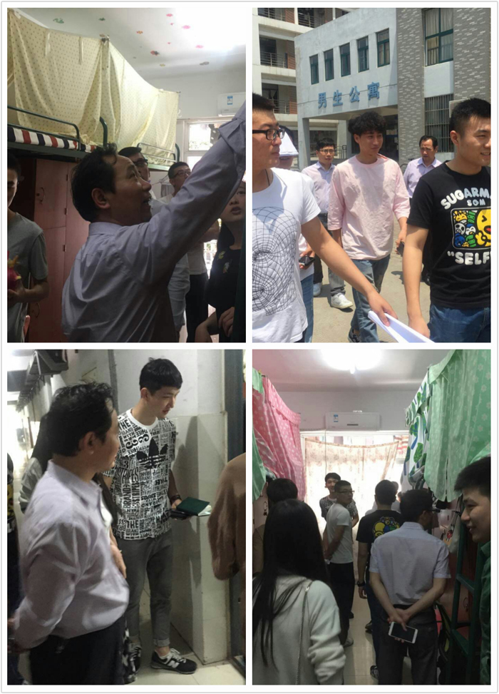 为推进我院的校园文明建设,塑造健康文明的宿舍生活环境,2016年5月19日中午由我系直属党支部书记董兆和、主任助理汪晓明和吴彬、学管主任冯传胜、团总支书记曹磊和副书记常昕等老师在各班班长、团支书的陪同下检查了我系学生寝室。
