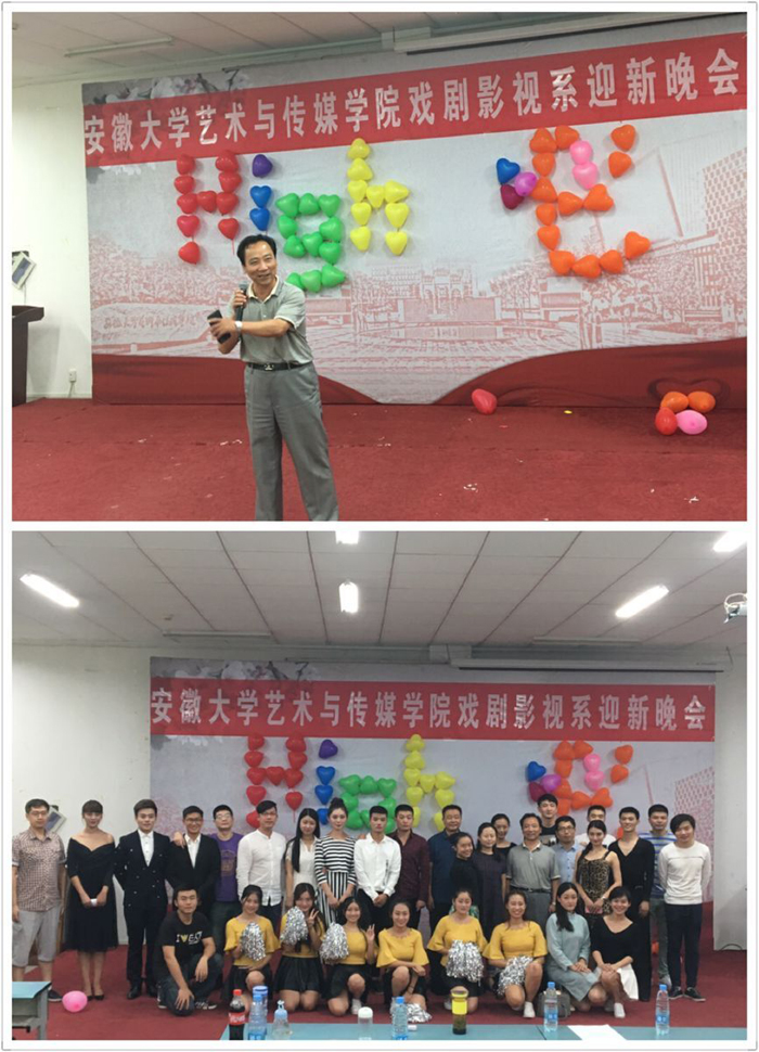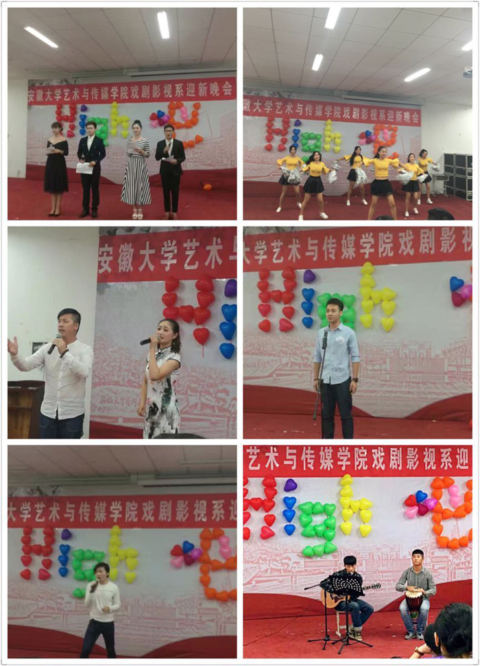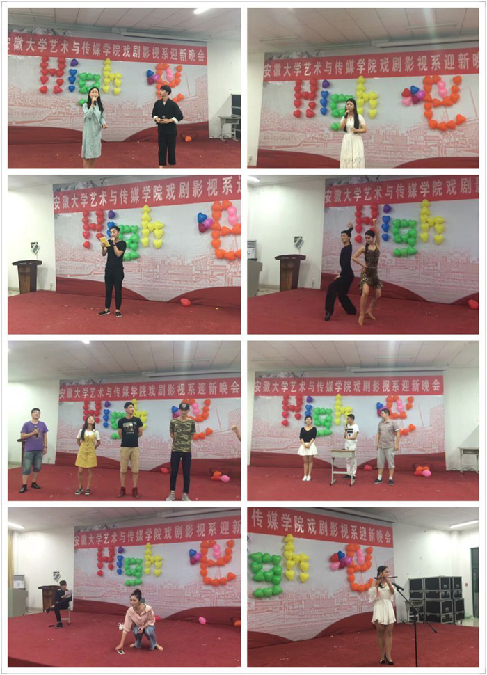 为迎接2016级新生的到来,展现我系学子风采,9月21日晚6点,由系团总支主办,学生会承办的“舞动青春 绽放梦想”戏剧影视系迎新晚会在一教二阶隆重举行。学生处处长刘长华、戏剧影视系党总支书记董兆和、系主任助理汪晓明、吴彬,部分系部青年教师与全系学生一起观看了演出。