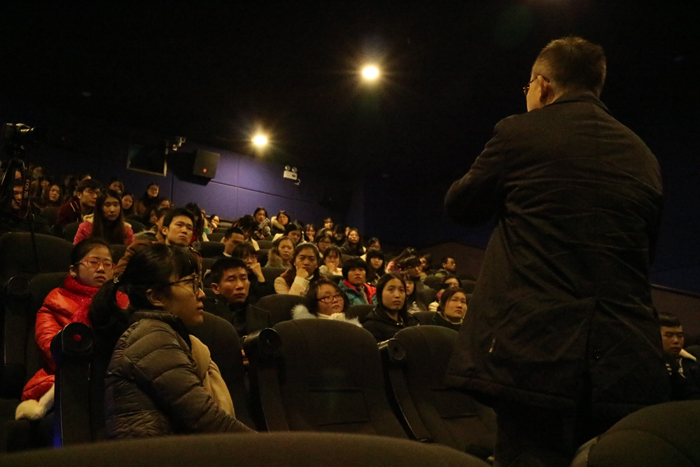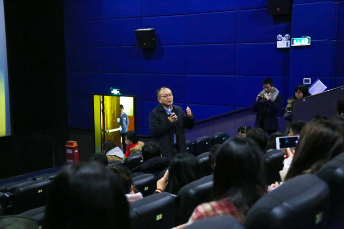 11月24日,新闻播音系师生在磨店大地影院联手举办了一场别开生面的观影活动——以众筹方式观看暂时无缘国内院线排片的优秀纪录电影《我的诗篇》。放映结束后,来自台湾的著名影视学者李天铎教授还就影片与在场的师生进行了深入的探讨。