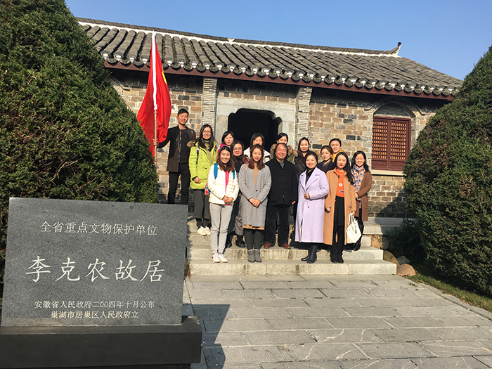 12月16日下午,美术设计系教工党支部以开展“两学一做”学习教育为契机,由系党总支书记罗耀东、副书记张丽丽带队,组织我系14名党员教师前往巢湖市烔炀镇参观无产阶级革命家、杰出的社会活动家、外交家,我党我军隐蔽战线的卓越领导者和组织者李克农将军的故居。通过缅怀李克农将军的丰功伟绩,接受了深刻的党性教育洗礼。