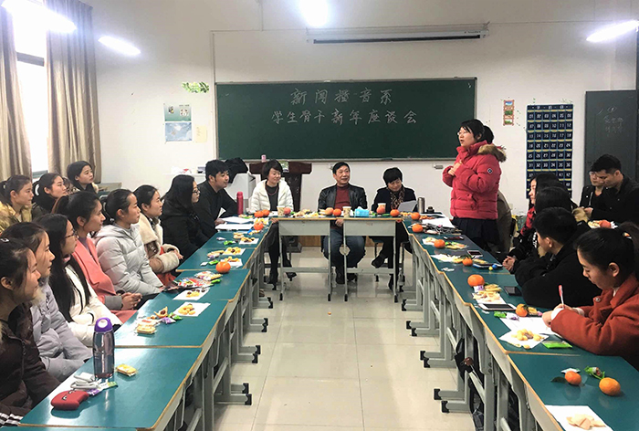 新闻播音系党总支、学生党支部、系学生管理办公室、系团总支和班主任老师代表以及50多位学生代表参加新年座谈会。 (文/秦帅 尤新 图/ 康宁 卢志祥)
