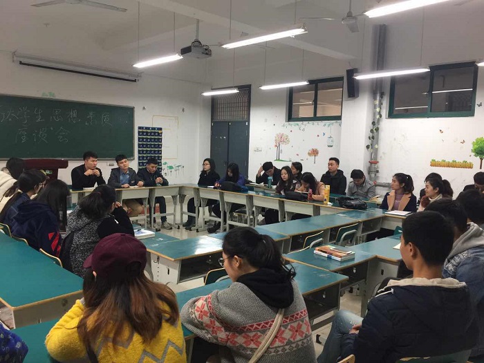 3月20日中午,新闻播音系的学生骨干们齐聚一堂,在2教201教室召开“提高大学生思想素质座谈会”。此次座谈会完全是由学生自发组织,来自学生会、团总支、新媒体实训中心等部门的30多名学生干部参会。