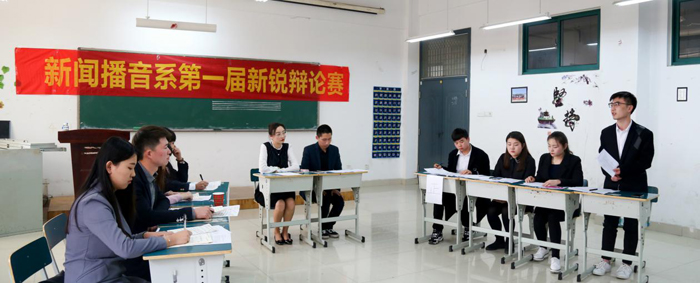 为学习贯彻习近平总书记高校思想政治工作会议讲话精神,展现我系大学生良好的精神面貌,4月12日下午,我系在二号教学楼206教室成功举办了新闻播音系第一届“新锐”辩论赛初赛。