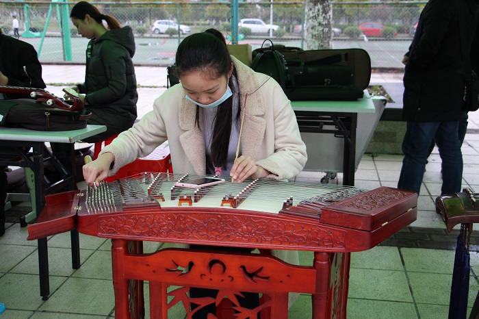 本次“礼敬中华传统文化”体验日活动与往届相比更加注重学生们的参与和传统文化的体验。在各个体验展区,文学社的同学们玩起了对对联、对诗词、传统文化知识问答活动;器乐专业的同学们弹起了古琴、拉起了二胡,引人驻足欣赏、倾听;汉服社开展了狼人杀、你画我猜、看图猜成语等游戏;特邀的安徽中医药大学“五禽戏”社团的同学们和大家进行了传统养生的交流。参加开幕式的领导和嘉宾们还饶有兴趣的与在场师生们一起在射箭展区互动交流。而随着诗词大会火爆起来的《飞花令》游戏最受欢迎,同学们积极报名参加,大家争先对句,脑力风暴,互不相让,在游戏的氛围中体会中国古代诗词的无穷魅力。