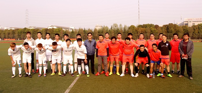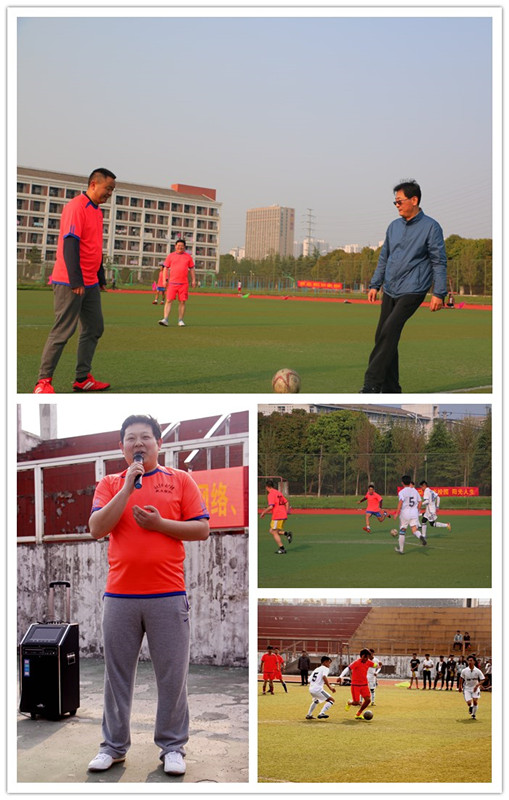 比赛中,教工联队技术娴熟,配合默契,学生联队跑动积极,敢打敢冲,双方你来我往,互不相让,为球迷奉献上了一场精彩的比赛,场外由学生代表组成的啦啦队也激情洋溢,大声地为双方队员加油、喝彩,最后,教工联队和学生联队2:2握手言和。