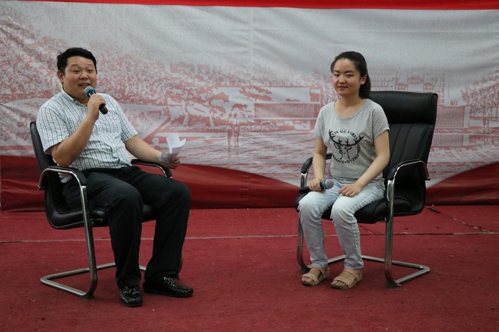 6月1日下午四点半,由学院关心下一代工作委员会、学工部、音乐舞蹈系党总支、思政教研室、院团委联合主办的“大牛面对面,朋辈话青春”活动在1号教学楼二楼阶梯教室举行。中国大学生自强之星、安徽省第一个音乐高考盲人考生、天津音乐学院优秀学生王香君应邀来到了活动现场。音乐舞蹈系党总支书记孙来法、党总支副书记李传兴和师生代表150余人出席了此次活动,活动由院团委书记陈明主持。