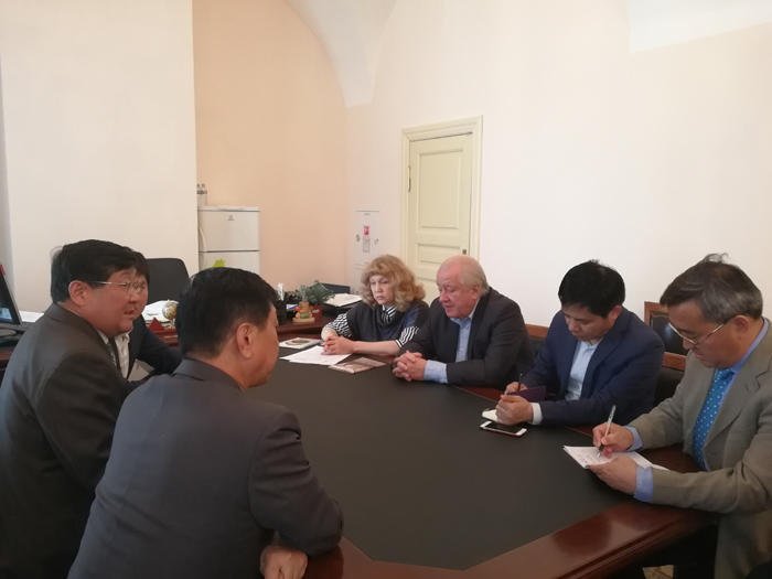 在俄罗斯国立师范大学,美术系主任弗拉基米尔.库茨米乔夫教授热情接待了访问团一行。经过商讨,双方在学生读研、教师进修访学、师生艺术交流、举办师生画展等方面达成合作交流意向。库茨米乔夫教授还陪同访问团一行参观了该系画室等教学场所。