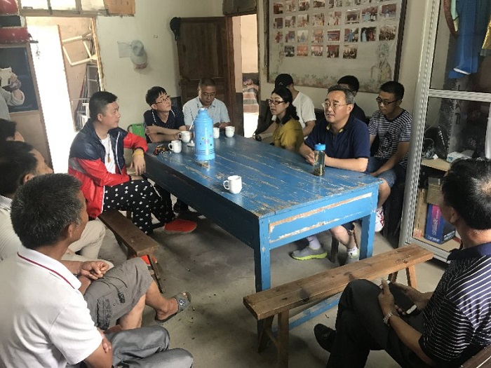 8月25日上午,因道路维修,调研组沿着蜿蜒的山道,驱车三个小时,来到五河镇河南村,参观考察首批国家级非物质文化遗产——岳西高腔最具代表性的剧社——聚合堂剧社。岳西高腔传承中心王翰林、聚合堂剧社社长蒋卫东热情接待了调研组。在蒋氏宗祠老戏台,岳西高腔传承人现场演绎了一幕戏。演出结束,调研组与老艺术家们就唱腔唱法、剧目曲谱、人才培养、传承创新等问题,进行了热烈交流。下午,调研组来到岳西天鹅集团,实地探访天鹅职业培训学校实训车间,了解了民营企业在革命老区脱贫攻坚中的责任担当。