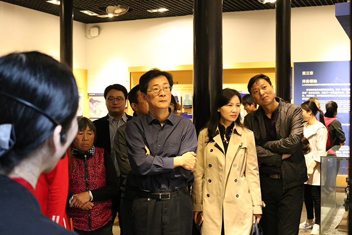 2017年10月11日上午,院党委副书记沈端良与新闻播音系师生来到合肥市淮河路步行街李鸿章故居陈列馆调研,洽谈大学生志愿服务基地建设。