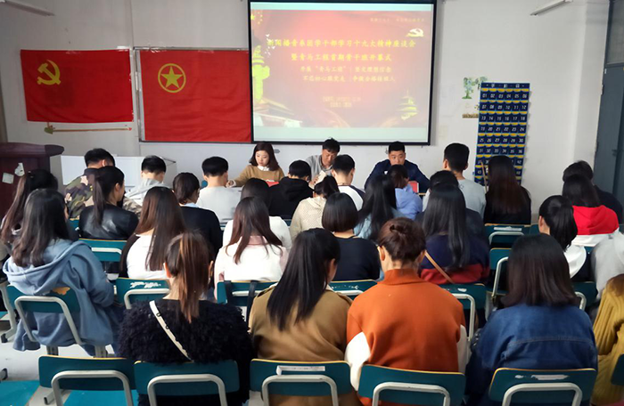 随后,陈伟伟阐述了贯彻落实十九大内容的必要性,号召同学们做到学而信、学而用、学而行。秦帅带领团学干部们学习了新写入党章的十条思想。张井水则从三个方面对十九大进行了解读。一是要学认真领会和深入解读十九大的理论创新和理论贡献;二是要消化党的十九大精神,树立民族自信心,明确“社会主义现代化强国”的目标;三是要落实“学生管理”制度,加强思想作风建设,每个团学干部都要充分发挥带头作用。在“专业建设”上教学相长,脚踏实地。同学们认真听完后,围绕着十九大展开了热烈的讨论。