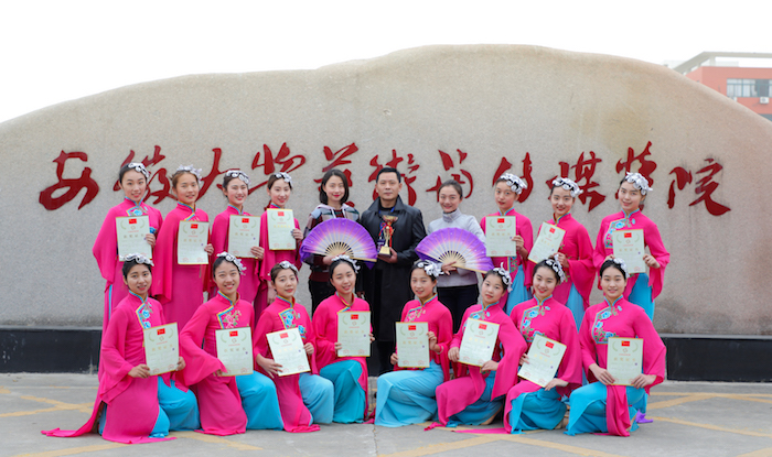 近日,“2017-2018年全国啦啦操联赛(合肥站)”在合肥市新站区举办。由我院音乐舞蹈系李胜副主任担任领队,冉雯雯、龙源两位老师担任教练员的“乐舞”啦啦操代表队斩获公开青年丙组集体自由舞蹈冠军(第一名)。