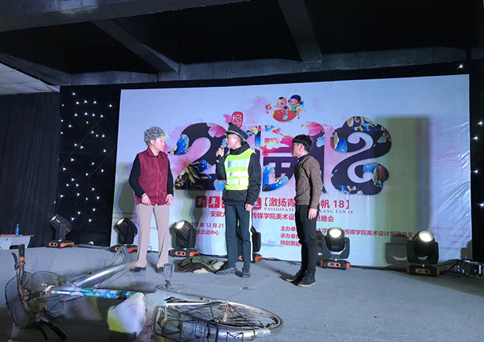 12月21日18时,由美术设计系团总支学生会主办的“激扬青春 扬帆18”元旦晚会在学院大学生活动中心举行。安徽大学艺术与传媒学院团委书记陈明、美术设计系副主任刘勇及美术设计系近300名师生共同观看了演出。此次晚会由美术设计系谢莉、卫宁、程成、孙梦婷四位同学主持。