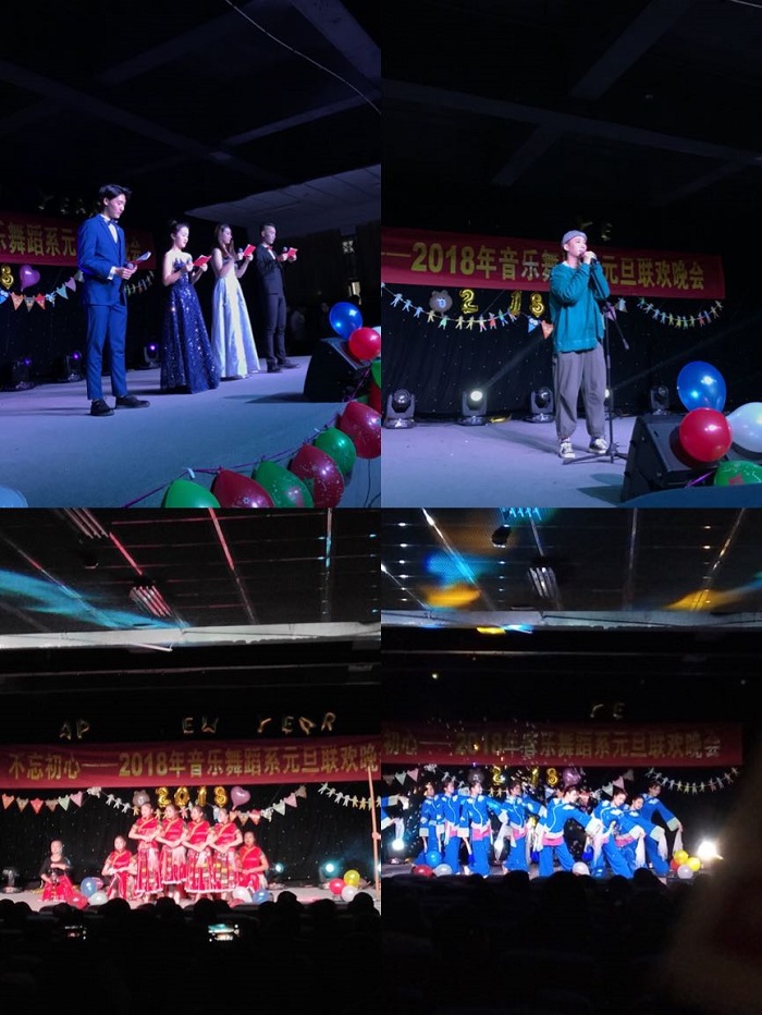 一元复苏、万象更新。在2018年元旦即将来临之际,音乐舞蹈系于12月25日,在大学生艺术实践中心成功举行主题为“新时代、新安徽、不忘初心——2018年音乐舞蹈系元旦晚会”。学院党委副书记沈端良、副院长张晶,院团委书记陈明,音乐舞蹈系党总支书记、系主任孙来法等领导与300多名师生欢聚一堂,观看演出。