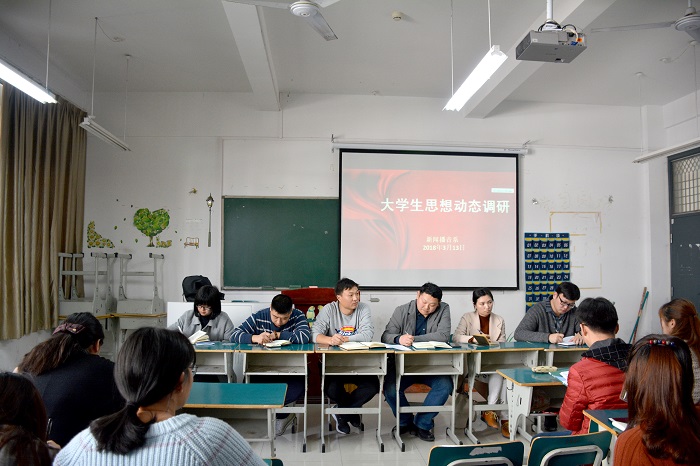 3月13日12:30,新闻播音系在二教201教室召开了新学期大学生思想动态调研座谈会。新闻播音系党总支及相关学生管理工作人员、各班班干部、学生代表50余人参加座谈会,宣传部、学生工作部(学生处)、教务处、总务处、团委等相关部门到会调研。座谈会由系主任助理张井水主持。