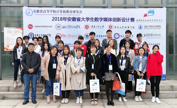 4月14日至15日, 2018年安徽省数字媒体创新设计赛现场决赛在安徽新闻出版职业技术学院科技楼报告厅馆隆重举行。本次竞赛共有来自全省30余所高校(或校区)的342支队伍报名,经网评专家评议,评出100件作品参加现场决赛,角逐本次大赛的一、二等奖。当天,美术设计系6名指导老师带领21名数字媒体艺术专业学生赴决赛现场进行答辩。美术设计系数字媒体艺术专业学生入选12组作品,涉及Flash交互动画、Unity 3D虚拟场景搭建、app交互设计应用等多个类别。