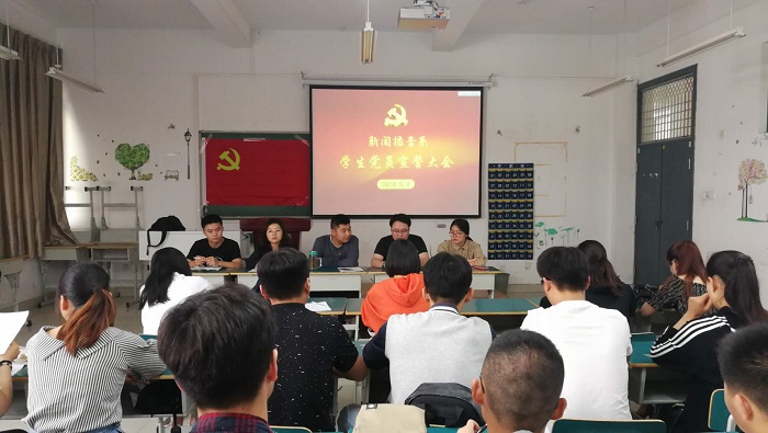 5月9日中午12:30,由新闻播音系组织的2017级学生党员宣誓大会在2教201教室进行,此次会议由新闻播音系学生党支部学生副书记陈威同学主持,新闻播音系学生党支部书记秦帅、副书记杜衎、组织委员陈伟伟、纪检委员康宁以及2017级学生党员、预备党员和入党积极分子参加了宣誓大会。