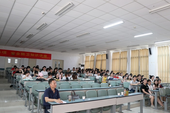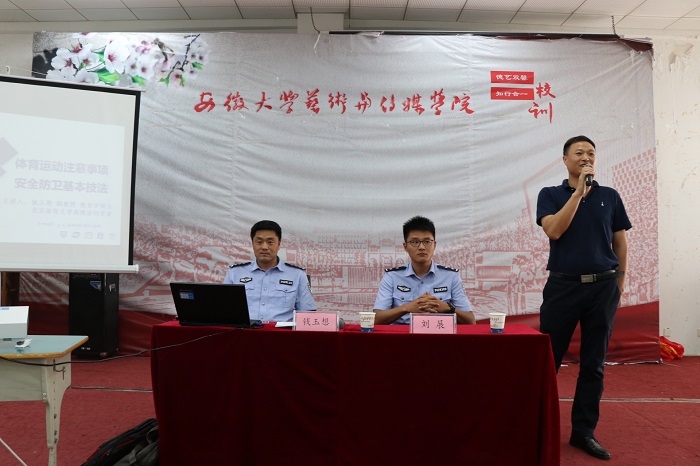 6月13日下午两点半,安徽警官职业学院钱玉想、刘展两位教师应新闻播音系团总支邀请来我系做“运动注意事项,安全防卫知识”讲座。新闻播音系师生共120余人聆听了此次讲座。
