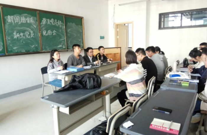 10月18日中午,新闻播音系学生党支部在美术楼301教室召开了新生党员见面会。系学生党支部书记秦帅、副书记杜衎、组织委员陈伟伟以及2017级、2018级全体学生党员参加了本次会议。