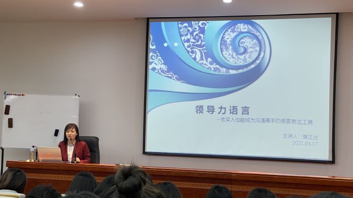 蔡正兰从如何交涉、如何道歉、如何说服等3个方面讲述了领导力语言在沟通表达中的重要作用。同时,蔡正兰强调,对领导力语言的理解不能仅局限于领导者的层面,它代表的是一种沟通技能,当代大学生学会使用领导力语言,对于当下的学习、生活以及今后的实习、工作中的人际沟通和交往均大有裨益。