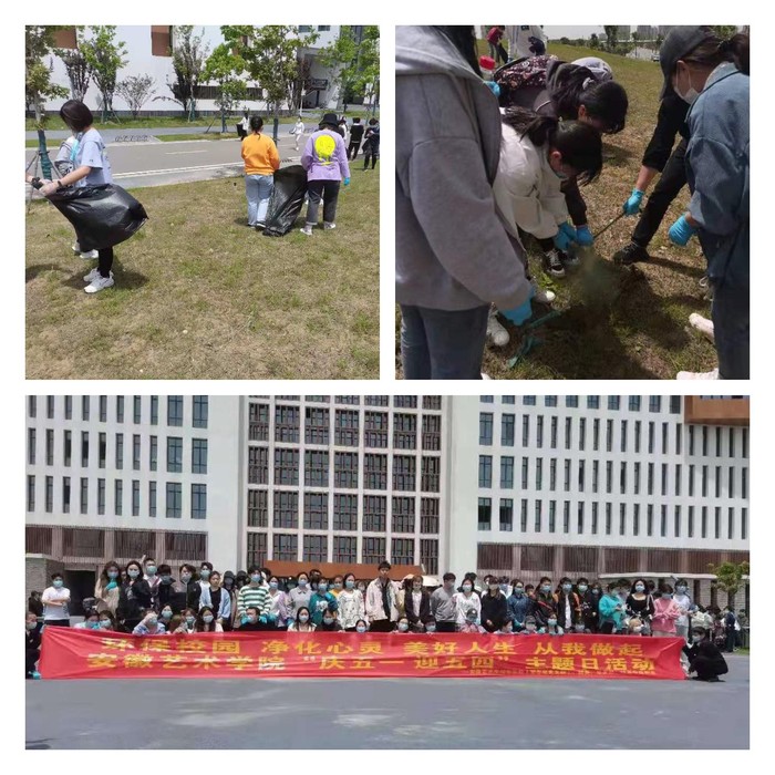4月29日,在“五一”国际劳动节和“五四”青年节来临之际,为落实立德树人根本任务,树立劳动最光荣意识,传承和弘扬五四精神,落实《中共中央 国务院关于全面加强新时代大中小学劳动教育的意见》,新闻播音系团总支学生会组织各班级志愿者积极参加由我校总务处、学生处、院团委主办,新闻播音系、音乐舞蹈系、美术设计系、戏剧影视系协办,江苏中住物业服务项目部承办的“庆五一迎五四”主题活动。