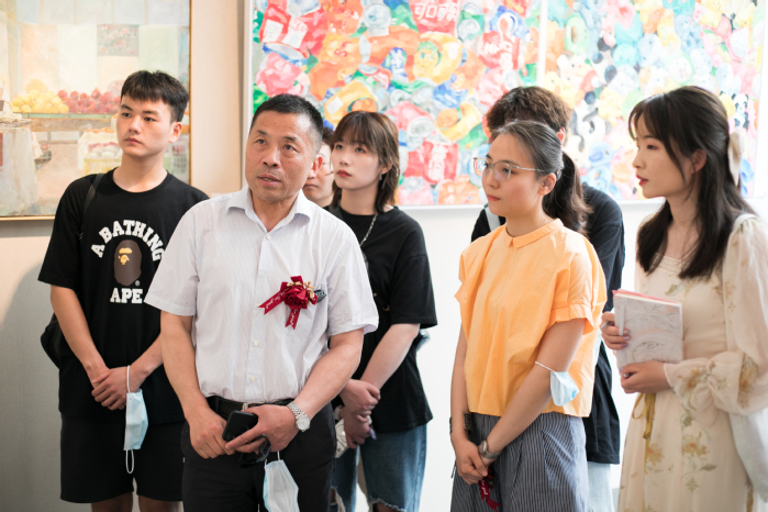 据了解,本次展览共展出中国画、油画、版画、书法、篆刻、剪纸、综合材料绘画作品100件,突出建党百年主题,反映中国共产党走过的百年光辉历程和取得的辉煌成就。本次展览中,美术设计系师生们表现出别样的风采,他们从百年党史中汲取前进力量,用美术语言讲好中国故事,庆祝中国共产党百年华诞。老师们悉心指导学生创作,积极引导学生在作品中厚植爱国主义情怀,创作出富有时代精神内涵的精品,并在探索文化历史融合和创新发展方面进行了大胆的尝试。