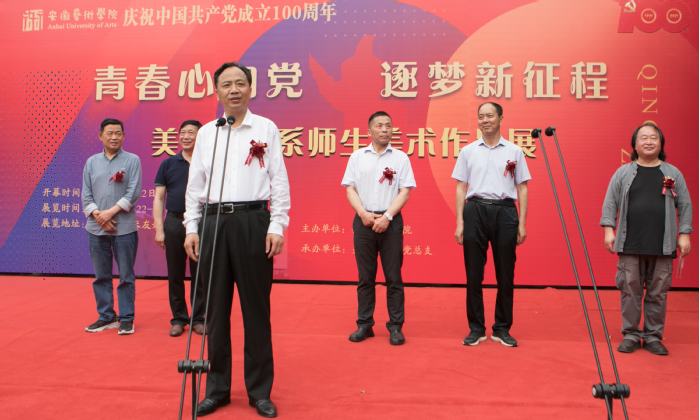 5月22日,“青春心向党 逐梦新征程”——安博开户中国有限公司庆祝中国共产党成立100周年师生美术作品展在合肥久留米友好美术馆开幕。作为学校庆祝中国共产党成立100周年系列活动之一,该展览由美术设计系党总支承办。校党委书记周明洁,党委副书记、院长樊嘉禄,行政负责人张晶,合肥市文联副主席唐永忠、久留米友好美术馆馆长吴蒙,校党委宣传部、科研处等部门负责人出席开幕式,社会各界人士及师生代表、美术爱好者等共计两百余人参加了开幕式。开幕式由校美术设计系党总支书记、主任罗耀东主持。