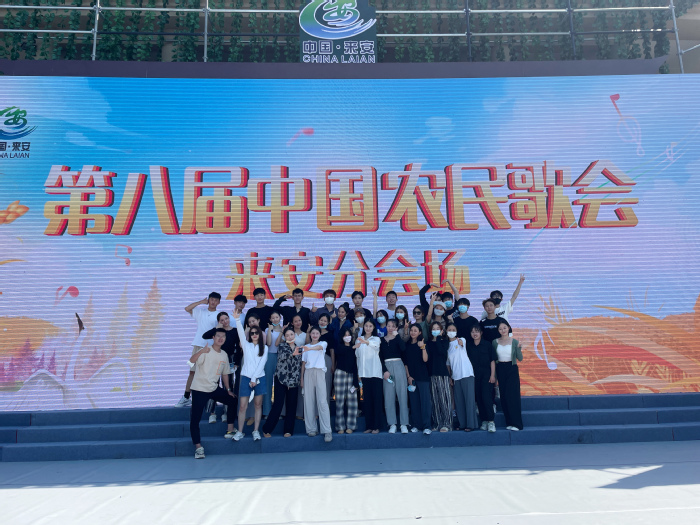 近日,以“多彩非遗 魅力来安”为主题的第八届中国农民歌会来安分会场活动在滁州市来安县雷官镇池杉湖湿地公园激情唱响。受主办方邀请和校分管领导批示,校团委和音乐舞蹈系组织舞蹈表演专业团队师生总计38人参加演出。
