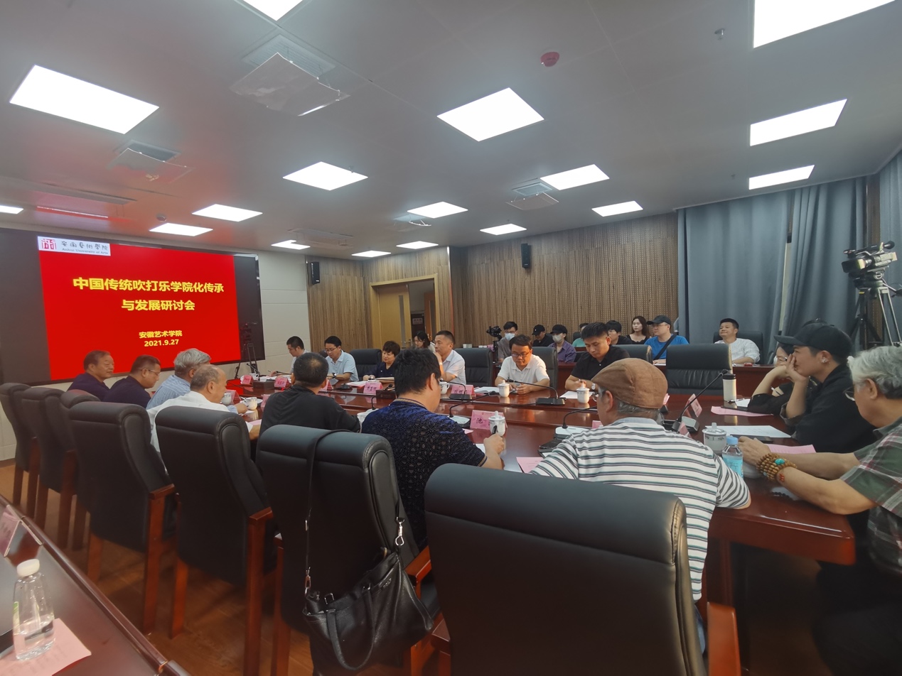 研讨会上,中国非物质文化遗产中心原常务副主任、中国艺术研究院研究生院原党委书记、副院长李新风教授,中央音乐学院出版社社长张伯瑜教授,浙江师范大学音乐学院院长郭克俭教授,国家京剧院国家二级编剧、故宫博物院在站博士后池俊,济南大学、菏泽学院客座教授、国家一级作曲苏本栋,亳州学院音乐学院徐小明教授及北京广播电视台编辑张欣等专家,分别围绕中国吹打乐的现状、中国吹打乐学院化传承与发展、学科专业建设等方面进行了深入的讨论与交流。