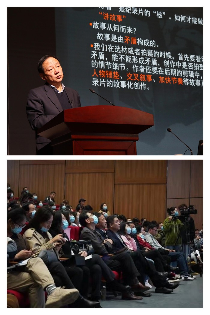 讲座围绕纪录片的特点和社会意义进行系统介绍,同时分析中国不同类型、不同视角、不同体量、不同主题的纪录片作品。禹成明先解释了世界纪录片优秀创作者对纪录片意义的表述,然后就中国纪录片的发展阶段和如何做好一部优秀纪录片的方式方法进行了深入讲授,结合大量优秀实例,生动形象,引人入胜。讲座现场座无虚席,师生们也积极提问,交流气氛浓厚。