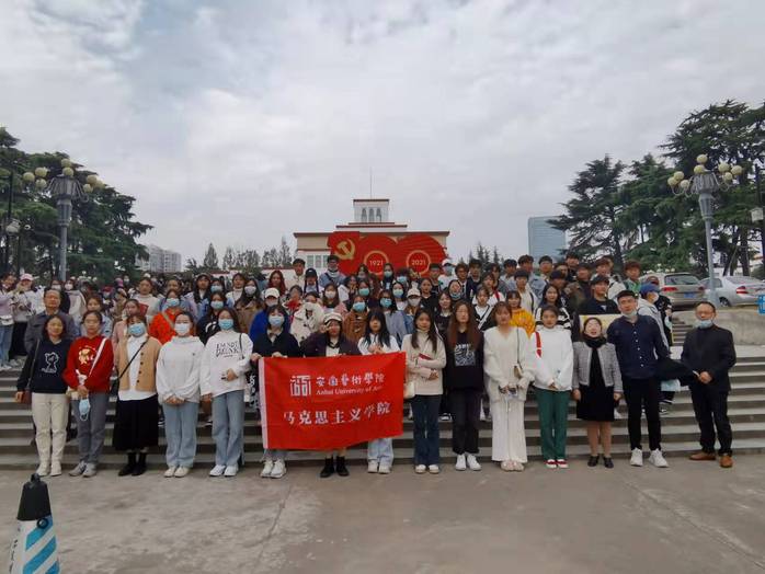 随后,我校师生在博物院讲解员的带领下,分两批开展现场教学,参观“初心印江淮”——庆祝中国共产党成立100周年主题展。