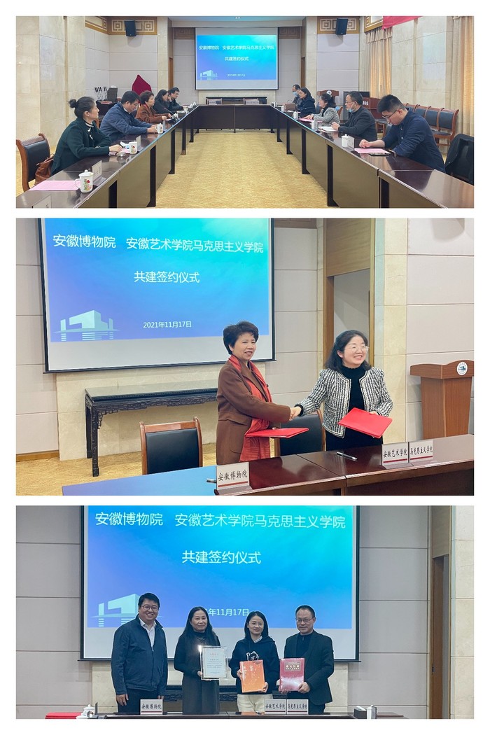 11月17日下午,马克思主义学院与安徽博物院共建大学生思想政治理论课实践教学基地签约揭牌仪式暨首次实践教学活动在安徽博物院举办。马院副院长陈昀岚、博物院副院长徐大珍,双方相关科室负责人,2021级新闻学、播音与主持专业学生代表150多人参加活动。