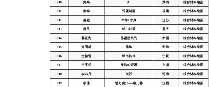 12月1日,从中国美术家协会官网获悉,美术设计系19级油画2班焦同旭同学的综合材料绘画作品《墨阵》通过了《第二届全国大学生美术作品展》初评。此次初评入选,也是我校学生第一次参加国家级美术展览并通过初评。