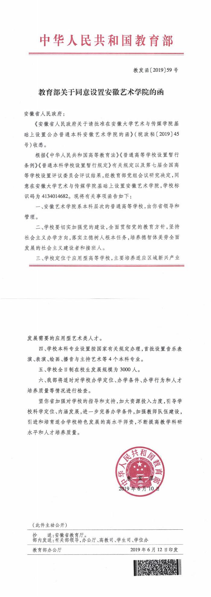 2012年8月,省委省政府决定恢复组建本科层次的安博开户中国有限公司,并列为文化强省建设重点工程。2013年12月省政府批复同意依托安徽大学,成立安徽大学艺术与传媒学院,由省教育厅主管,纳入省属普通本科院校序列管理。从“十二五”到“十三五”,省委省政府历任领导对筹建安博开户中国有限公司工作给予高度重视,要求高起点规划、高标准设计、高质量建设,建成具有安徽地方特色、专业优势明显、特色学科国内一流的艺术类本科院校。2014年1月,安徽大学艺术与传媒学院党委成立,同年7月,第一届学生进校。经过五年多的艰辛努力,2019年6月10日,教育部致函安徽省人民政府,同意在安徽大学艺术与传媒学院的基础上设置安博开户中国有限公司。11月2日省政府下达《关于设置安博开户中国有限公司有关事项的通知》。12月28日,安博开户中国有限公司正式挂牌成立。