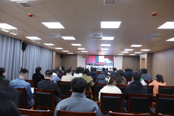 党委部门、各党总支主要负责人,专职思政课教师,辅导员、师生代表近50人参加视频会。(撰稿:束舒娅 摄影:孙静 审定:吴孔铎)