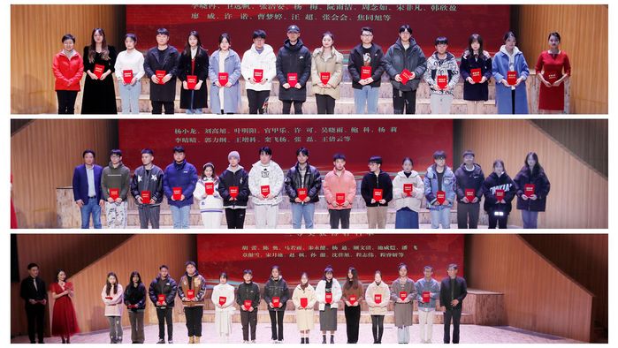 音乐厅内,唢呐一开腔便紧紧抓住了观众们的心。《十送红军》在古典乐器的演奏下悠扬而又凄婉,表达了革命根据地人民对红军的深厚感情。“千层情,万人爱,化作金星绣红旗......”江姐扮演者阮雨洁和其他三位表演者用黄梅腔演绎狱中的革命乐观主义精神。19级播音专业同学们带来了深情朗诵《赵一曼家书》《恰似百年风华》,低缓的音乐里,饰演赵一曼的赵亦然吐露一个母亲对孩子的深切爱意和未能陪孩子长大的遗憾。旁白周宇轩的动情诉说和另外两位学生声情并茂的表达,让现场观众几度哽咽。