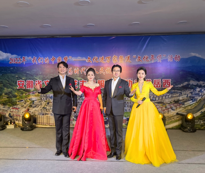 1月10日,2022年“我们的中国梦”——文化进万家暨送“文化年货”活动走进岳西专场演出圆满结束。中国文联十一大代表,校党委委员,音乐舞蹈系党总支书记、主任孙来法率音乐舞蹈系教师倾情献唱。