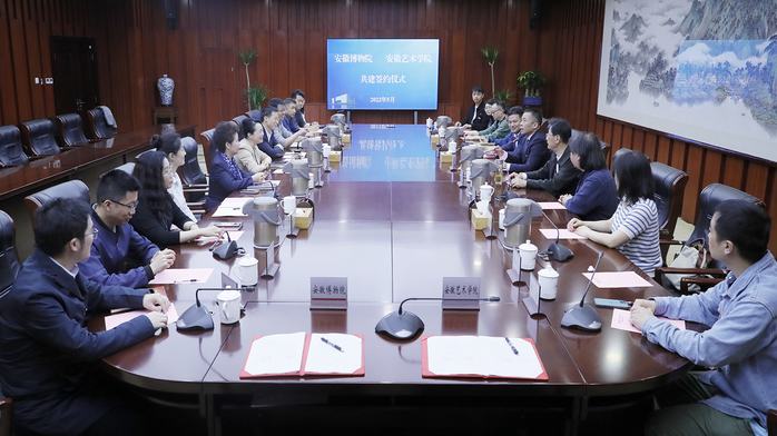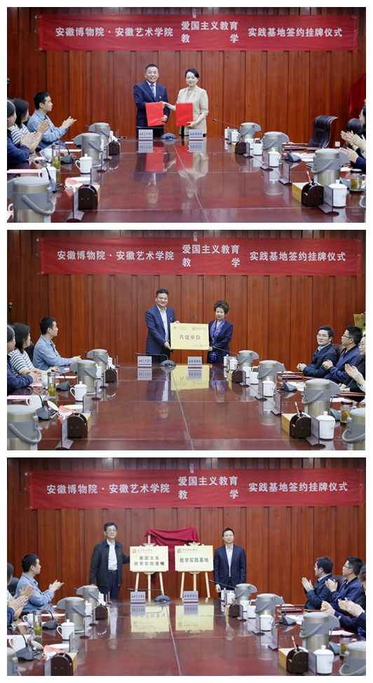 5月13日下午,我校与安徽博物院共建教育教学实践基地签约仪式在安徽博物院新馆新安江厅顺利举行。校党委副书记、校长樊嘉禄出席签约仪式。党委委员、办公室主任曹晓富,行政负责人沈端良参加。安徽博物院党委书记、院长胡敏,党委副书记、副院长雷修佛接待樊嘉禄一行。