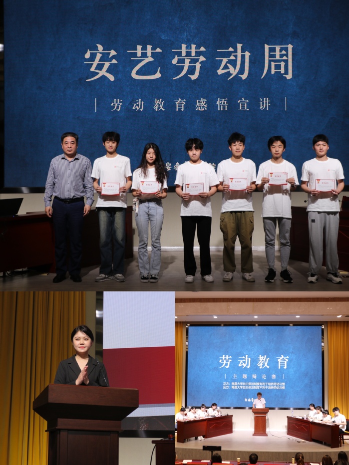 周羿纬组的六名同学配合默契,在学校首届大学生讲思政课比赛中取得第一名,晋级省级分区赛。同一天的安艺劳动周,劳动教育宣讲比赛中王晓龙同学获一等奖,劳动周辩论赛上王汝冉同学获最佳辩手。