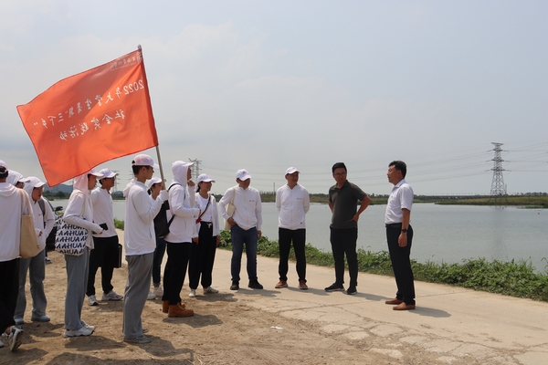 在三期项目工程现场调研时,合肥十八联圩建设管理有限公司常务副总经理李家政为师生们作进一步介绍。李家政用“全国十个之一”“4.9亿”“533个鱼塘”等数字概况当前十八联圩三期工程的建设理念和治理成效。李家政介绍说,习近平总书记在十八联圩地区首次提出“生态湿地蓄洪区”理念,为十八联圩生态建设指明了方向。