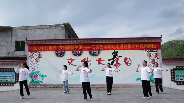 慰问演出在竹根河村自编自演的广场舞《大中国》中拉开序幕。演出汇聚舞蹈、演唱、竹笛等多种形式,“春到大湾村”小分队与竹根河村村民共同参演。整场晚会异彩纷呈,党委委员、音乐舞蹈系党总支书记、主任孙来法为观众送上歌曲《再见了,大别山》,省政协委员黄凤霞演唱《英雄赞歌》……一首大合唱《我和我的祖国》更是引来台上台下一起高歌,将晚会的气氛推向高潮。最后,全体成员合唱《八月桂花遍地开》,演出在悠扬婉转的歌声中落下帷幕。