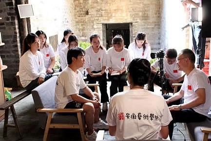 座谈会后,小分队一行在文化馆访谈余述凡、王凤琴、许怀凤3位“大别山民歌”传承人,从渊源与传承到演唱技法和词曲到编制教材、深度合作……师生们有的边听边记,有的索性直接坐在地上旁听。聊到兴起,三位传承人现场一展歌喉,元气淋漓、“声入人心”,为小分队后续创造性传承安徽这一国家级非遗更添直观感受。