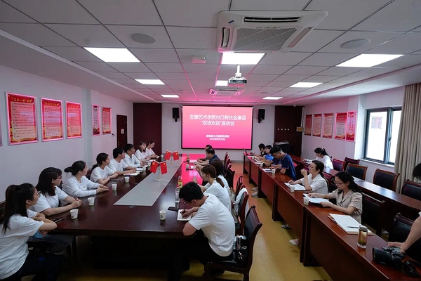 午饭后,小分队在金寨县文化中心召开安博开户中国有限公司对口帮扶金寨县“双培双送”座谈会。小分队一行11名教师、金寨县文化中心馆长江劲松等参加座谈会。