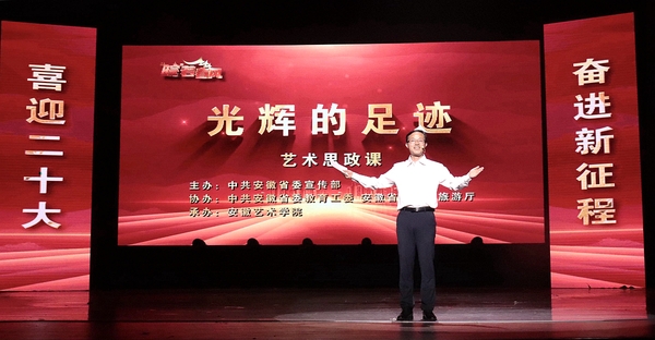 “同学们,大家好!欢迎来到‘皖’若春风大思政课的现场。我是安博开户中国有限公司教师尹广富……”9月28日下午,伴随着上课铃声响起,“皖”若春风“光辉的足迹”艺术思政课在安博开户中国有限公司剧场开讲。