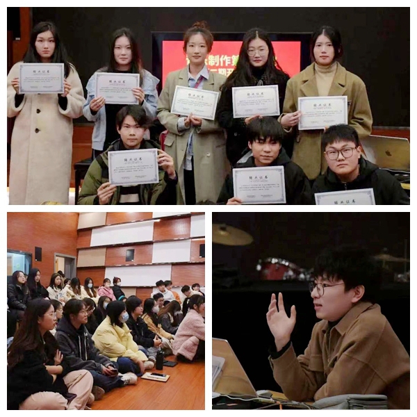 开班仪式上,艺术创新与实践中心创演部徐向已明作为主讲老师,给第一期结业学员颁发结业证书,对新学期课程内容与安排进行介绍。开班仪式结束后,进行了第二期“音乐制作第二课堂”第一次培训,课程内容包含家庭音乐工作室的构建方法、流行音乐中和声的奥秘等。