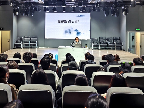 唐跃以“徽班唱的什么戏?”抛砖引玉,阐释了“徽班”的概念,并从地域源头、历史渊源到文献记录详细阐释徽班在不同历史时期传唱的戏种、戏腔,强调“徽班”在艰难而又光荣的发展历程中留下的“徽班精神”,让同学们不仅受到戏曲文化的熏陶,也开阔了学术视野,收获了专业知识。