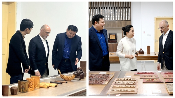 下午,设计学院召开中外合作办学交流会,双方就教材、人才培养方案、外方师资管理等进行深入交流与探讨。会后,与会人员参观教学场地、实训实验室、乡村振兴图像设计作品展、徽州艺术陈列馆等。