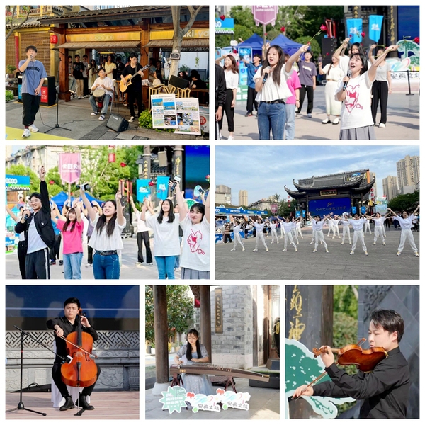 “音乐轻骑兵”文艺小分队所承担的演出活动分别有古筝与小提琴合奏《渔舟唱晚》、大提琴独奏《天鹅》、小提琴与合唱快闪《我和我的祖国》、青春舞蹈《青春向未来》、流行歌曲弹唱《等你下课》等,为“520”文旅惠民消费季启动仪式营造了活跃的氛围。