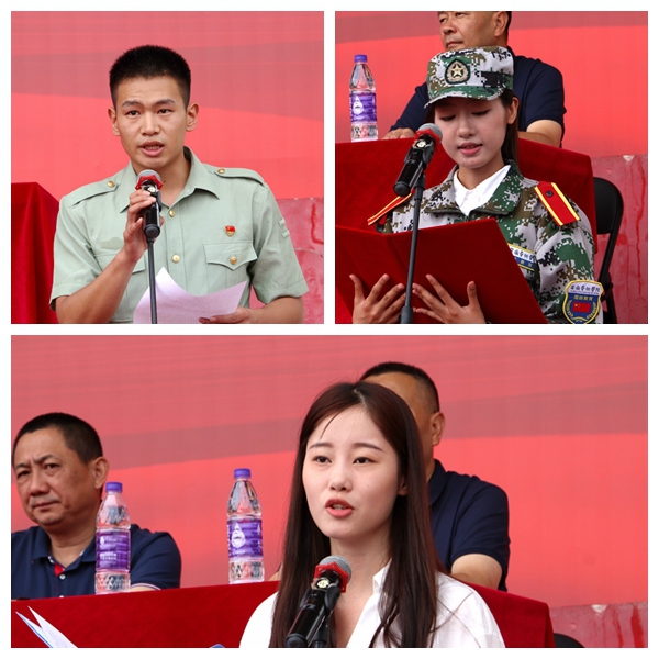 戏剧学院2019级黄梅戏表演本科班、优秀退役士兵李含笑和新生们分享自己的学习经历和对成长的感悟,期待学弟学妹们实干前行,顽强奋斗,持长剑纵马,执妙笔生花,自当凌云壮志,担当青年责任。传媒学院2023级播音与主持专业新生尹辛宇发表感言,通过入学军训,不仅锻炼了身体,更坚定了意志,大学美好的画卷已缓缓展开。要始终坚持将“德”放在首位,学艺先学德,在知行合一中不断提升能力本领。音乐学院辅导员张珂从当好学生思想的引领者、奋斗的倡导者、就业的服务者的角度,希望新生们在大学生活中严于律己、自省专注,通过青春拼搏的汗水收获安艺新的成长。