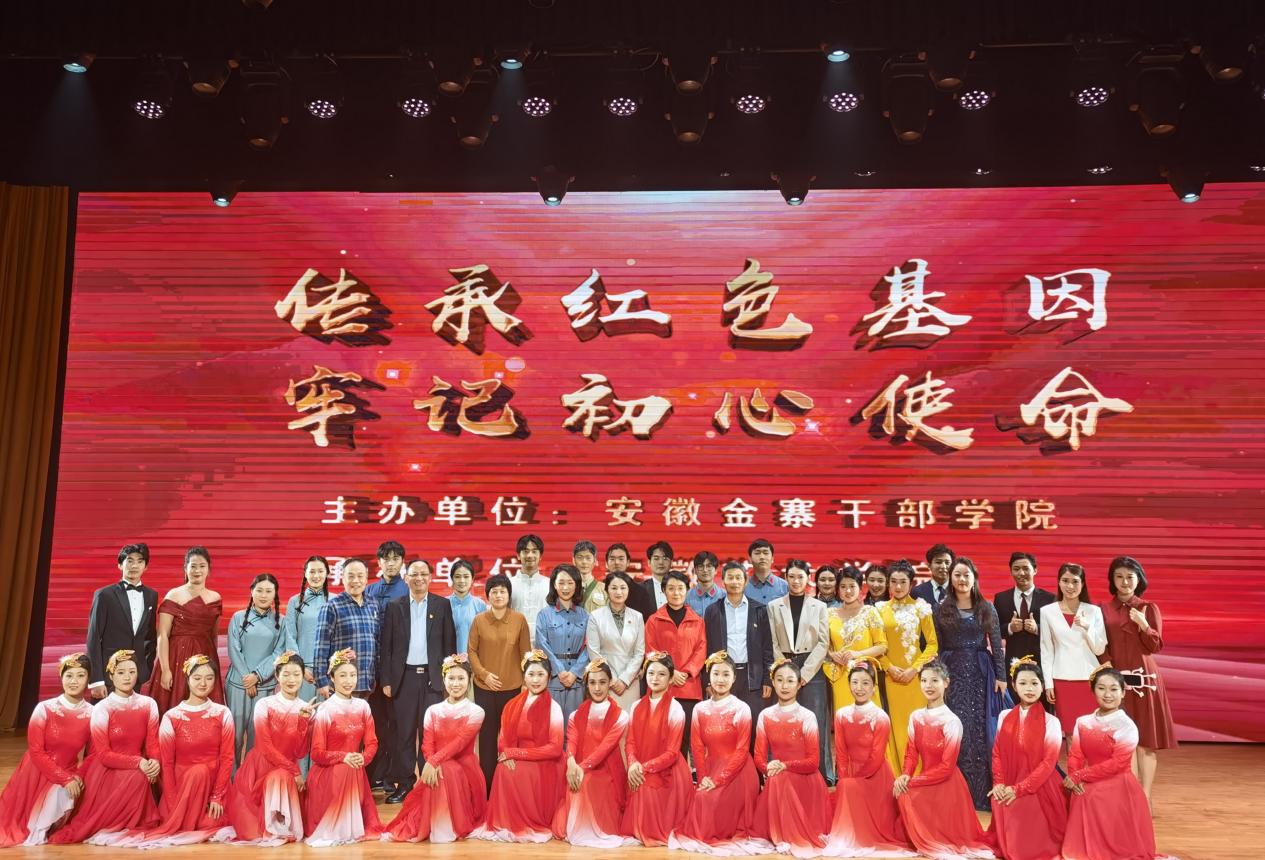 演出结束后,韩军上台同全体演职人员亲切合影。韩军说:“这是一堂成功的艺术党课。大家的倾情演绎不仅展示了安艺师生的风采,更深深触动了在场的每一位学员。参演师生要珍惜安徽金寨干部学院提供的广阔舞台,利用好这个舞台,让自己在艺术党课的熏陶下成为一束思政的光,照亮红色基因传承之路。”