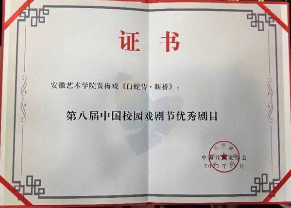 日前,由中国戏剧家协会、深圳市委宣传部、深圳市文化广电体育旅游局、深圳市文联、深圳市南山区政府共同主办的第八届中国校园戏剧节、第27届BeSeTo戏剧节暨2023南山戏剧节在深圳闭幕,学校戏剧学院青春实验剧团演出的黄梅戏《白蛇传·断桥》荣获第八届中国校园戏剧节优秀剧目。